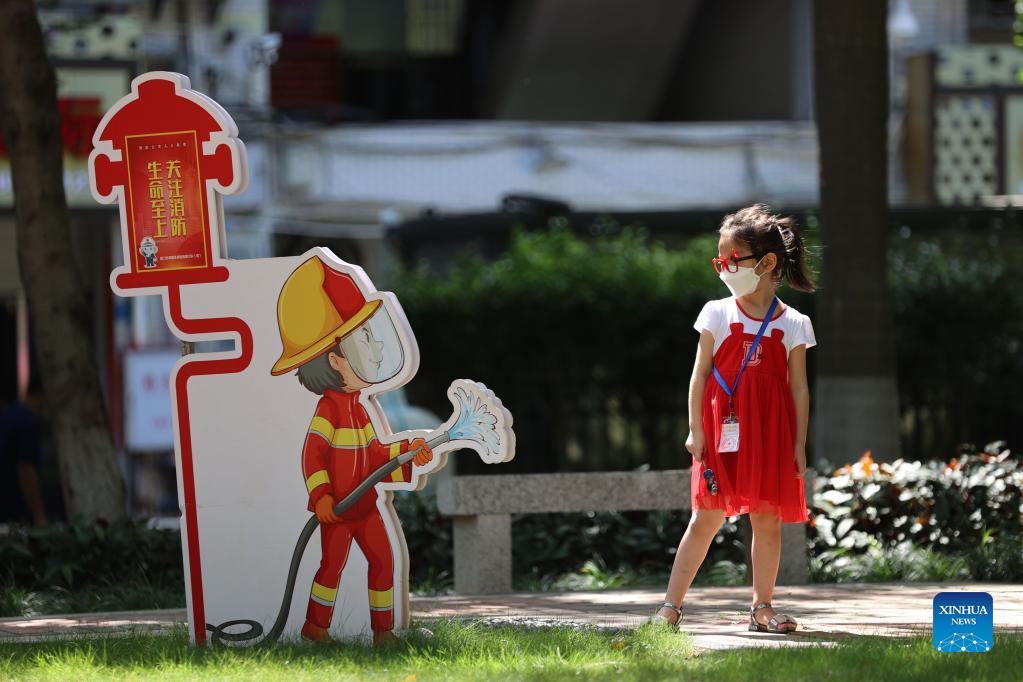 A kid plays at a park in Huli District of Xiamen, southeast China's Fujian Province, Oct. 5, 2021. Outdoor public places in Xiamen started to reopen from Oct. 5, as the results of the sixth round of citywide nucleic acid testing all came out negative. (Photo by Zeng Demeng/Xinhua)