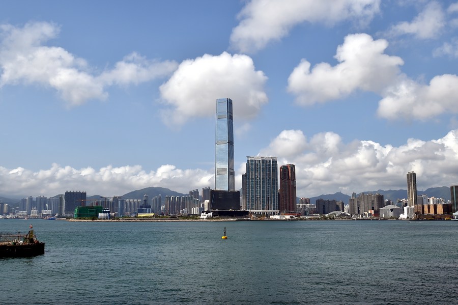 Photo taken on May 6, 2020 shows the International Finance Centre in Hong Kong, south China.(Photo by Lo Ping Fai/Xinhua)