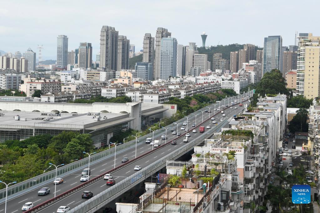 Photo taken on Oct. 8, 2021 shows vehicles running on the road in Xiamen City, southeast China's Fujian Province. The city of Xiamen in southeast China's Fujian Province, which witnessed the country's latest resurgence of COVID-19 cluster infections, cleared all medium- and high-risk areas for COVID-19 on Thursday night. The city downgraded three medium-risk areas and one high-risk area for COVID-19 to low-risk areas starting 9 p.m. Thursday, according to the municipal epidemic prevention and control headquarters. (Xinhua/Jiang Kehong)