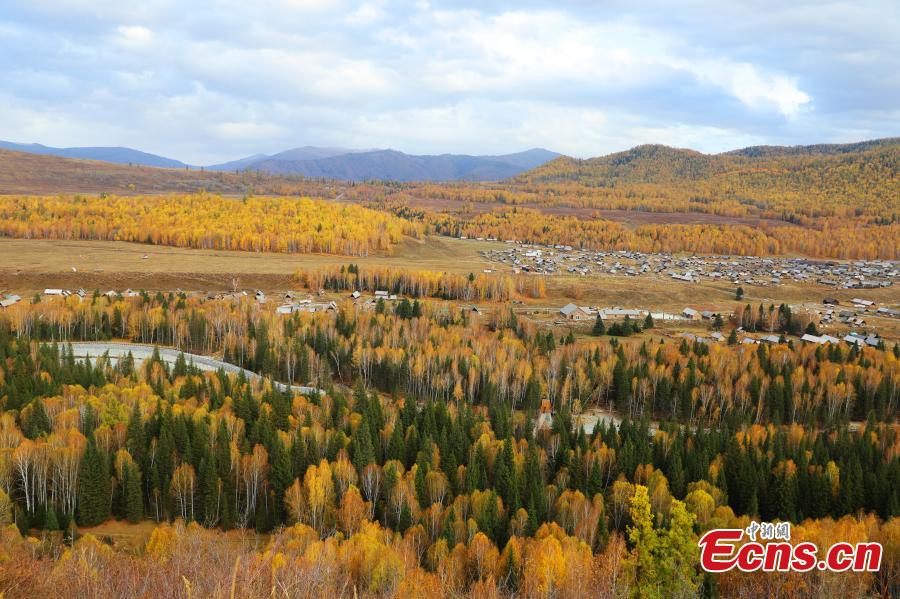 Photo taken on Oct. 7, 2021 shows white birches and pine trees decorate Burqin County in Xinjiang Autonomous region, like a natural oil painting on the land. The county has welcomed the most beautiful season of the year.(Photo:China News Service/Liu Shihe)