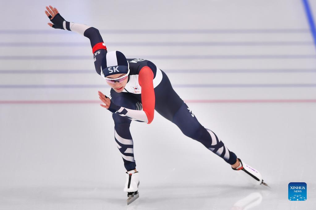 Kim Hyun Yung of South Korea competes during the Experience Beijing Speed Skating China Open Women's 500m in Beijing, China on Oct. 8, 2021. (Xinhua/Chen Yichen)
