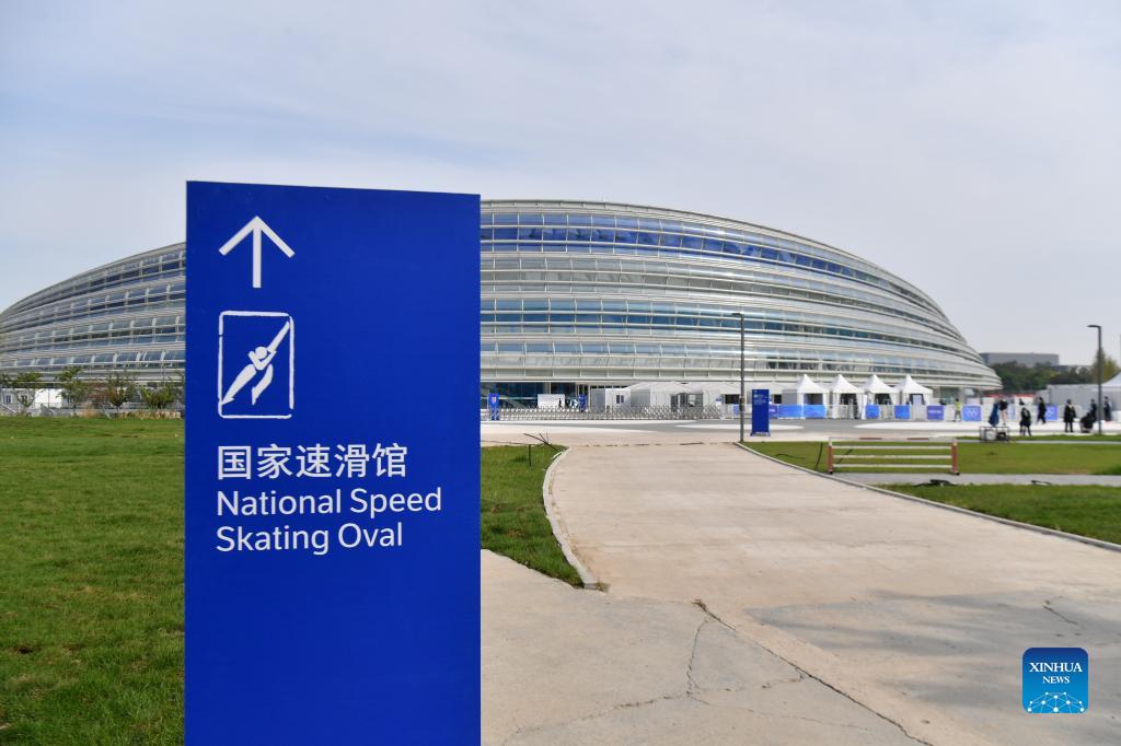 Photo taken on Oct. 8, 2021 shows the National Speed Skating Oval, venue of the Experience Beijing Speed Skating China Open, in Beijing, China. (Xinhua/Chen Yichen)