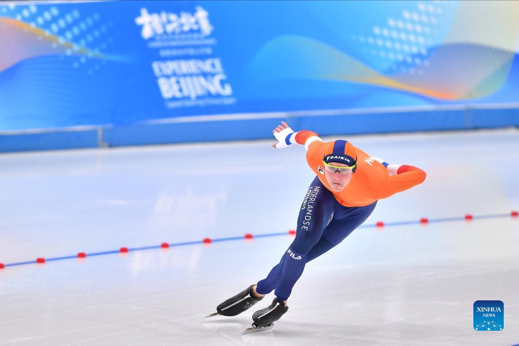 Kayo Vos of the Netherlands competes during the Experience Beijing Speed Skating China Open Men's 500m in Beijing, China on Oct. 8, 2021. (Xinhua/Chen Yichen)