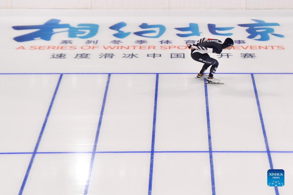 Chung Yanghun of South Korea competes during the Experience Beijing Speed Skating China Open Men's 5000m in Beijing, China on Oct. 8, 2021. (Xinhua/Chen Yichen)
