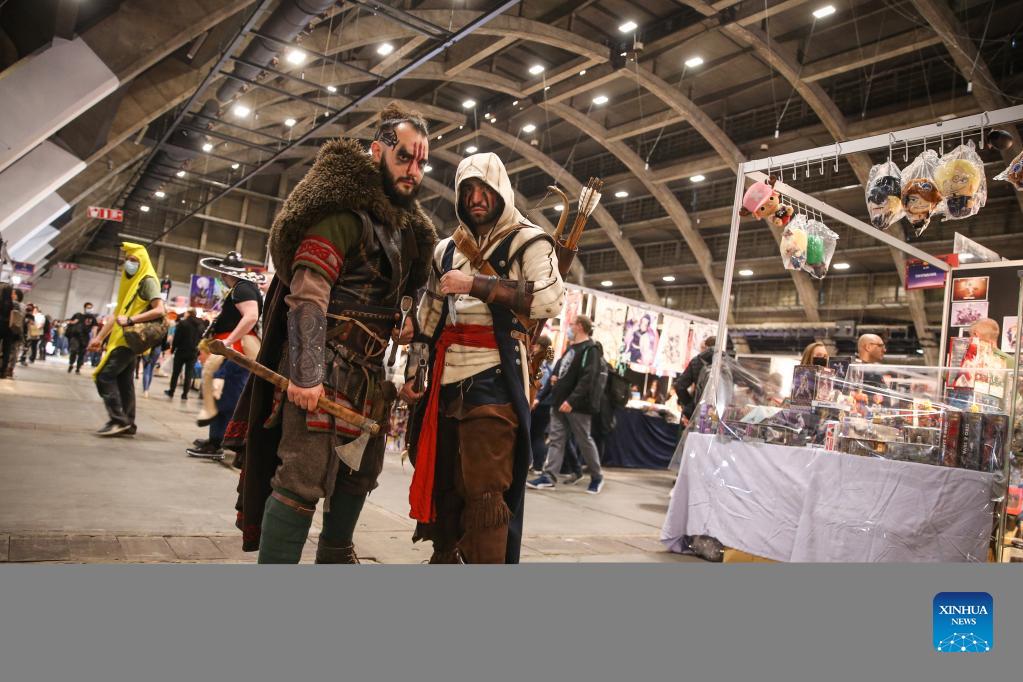 Cosplayers pose at the Made in Asia animation and cartoon products fair in Brussels, Belgium, Oct. 8, 2021. (Xinhua/Zheng Huansong)