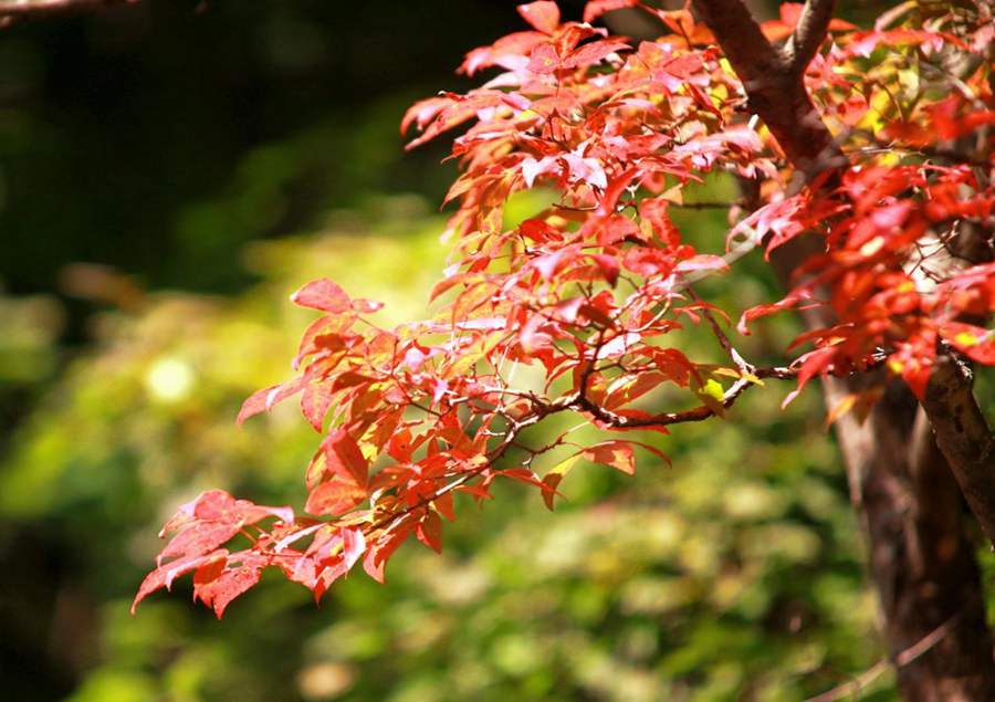 Photo shows maple leaves at the Guanmen Mountain National Forest Park in Benxi, northeast China's Liaoning province. (People's Daily Online/Min Zhengtong)