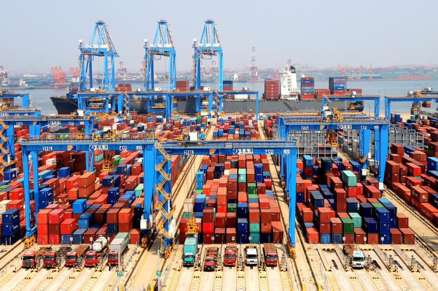 Photo taken on May 16, 2018 shows an automatic container dock in Qingdao, east China's Shandong Province. (Xinhua/Wang Peike)