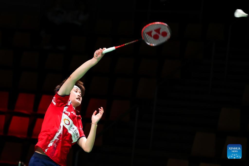 China's Chen Yufei competes in the women's singles match against Malaysia's Eoon Qi Xuan during the group D match between China and Malaysia at Uber Cup badminton tournament in Aarhus, Denmark, Oct. 10, 2021. (Xinhua/Zhang Cheng)