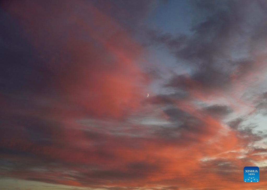 Photo taken on Oct. 10, 2021 shows the view of sunset glow in Beijing, capital of China. (Xinhua/Du Juanjuan)