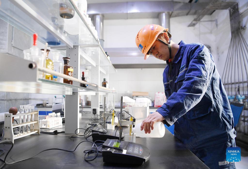 A worker of Xixia thermoelectric company works in a lab in Yinchuan, northwest China's Ningxia Hui Autonomous Region, Oct. 11, 2021. The company started heating equipment maintenance work for the upcoming heating season. (Xinhua/Wang Peng)