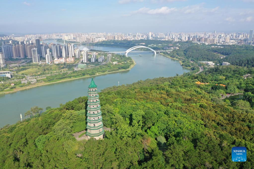 Aerial photo taken on July 14, 2021 shows the scenery of Qingxiu mountain in Nanning, south China's Guangxi Zhuang Autonomous Region. (Xinhua/Lu Boan)