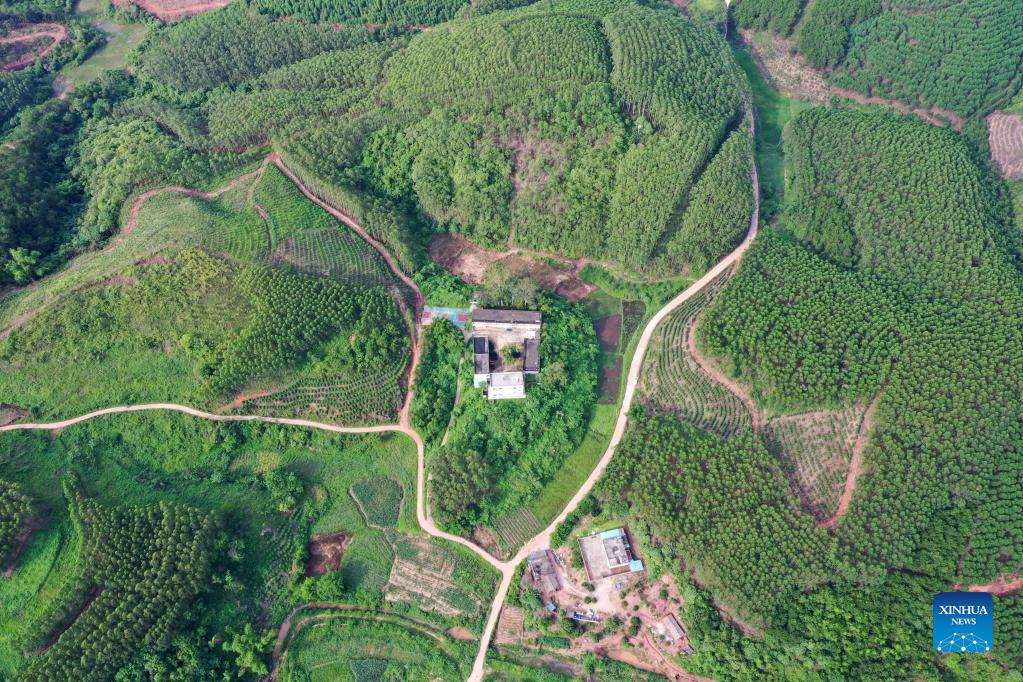 Aerial photo taken on June 16, 2021 shows the countryside scenery of Naqin Township in Shangsi County, south China's Guangxi Zhuang Autonomous Region. (Xinhua/Lu Boan)