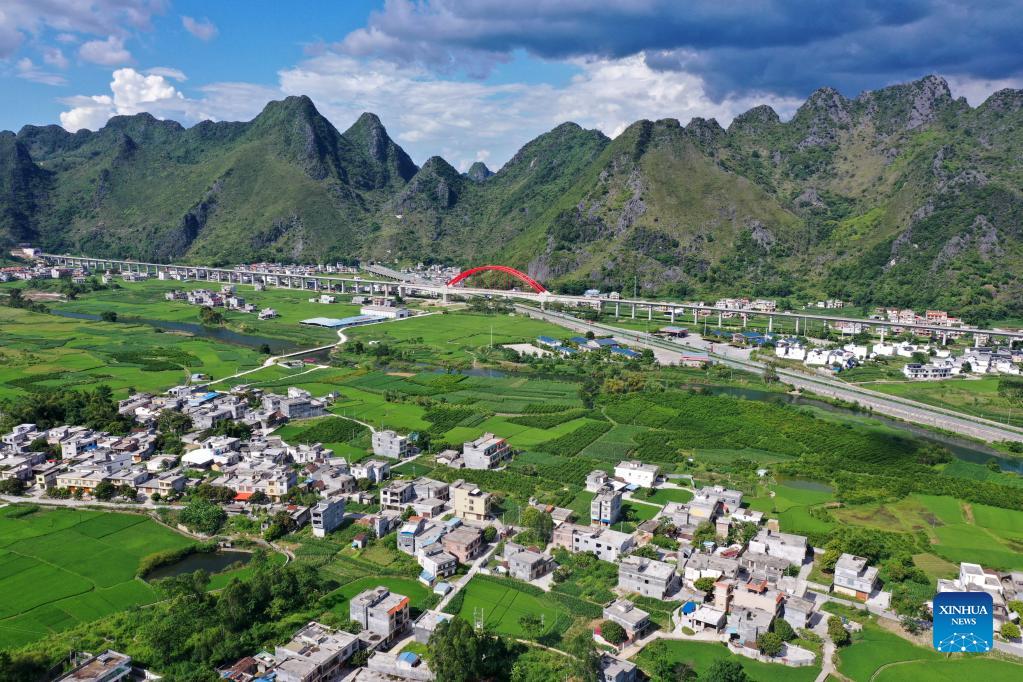 Aerial photo taken on Aug. 31, 2021 shows the countryside scenery of Gaoling Township in Du'an Yao Autonomous County, south China's Guangxi Zhuang Autonomous Region. (Xinhua/Lu Boan)