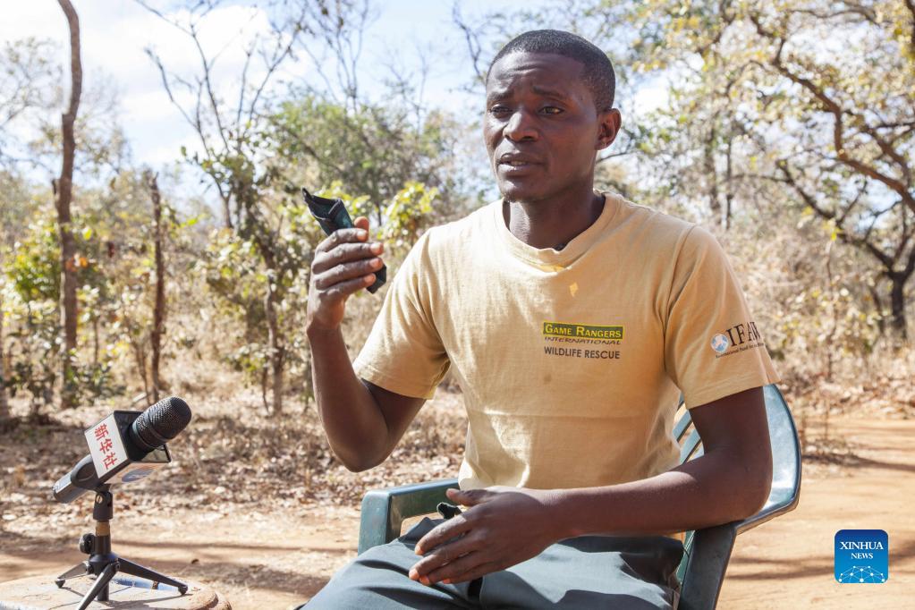 Oscar Shumbwamuntu, a deputy head keeper, speaks during an interview at an elephant nursery in Lilayi, south of Lusaka, Zambia, on July 30, 2021. While elephant poaching causes decimation to the species' population and is widely blamed, another aspect of poaching also requires more attention -- that is the bereaved baby elephants. (Photo by Martin Mbangweta/Xinhua)