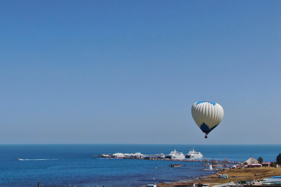 Aerial photo taken on Sept. 23, 2020 shows a view of Qinghai Lake scenic area in northwest China's Qinghai Province. (Xinhua/Zhang Long)