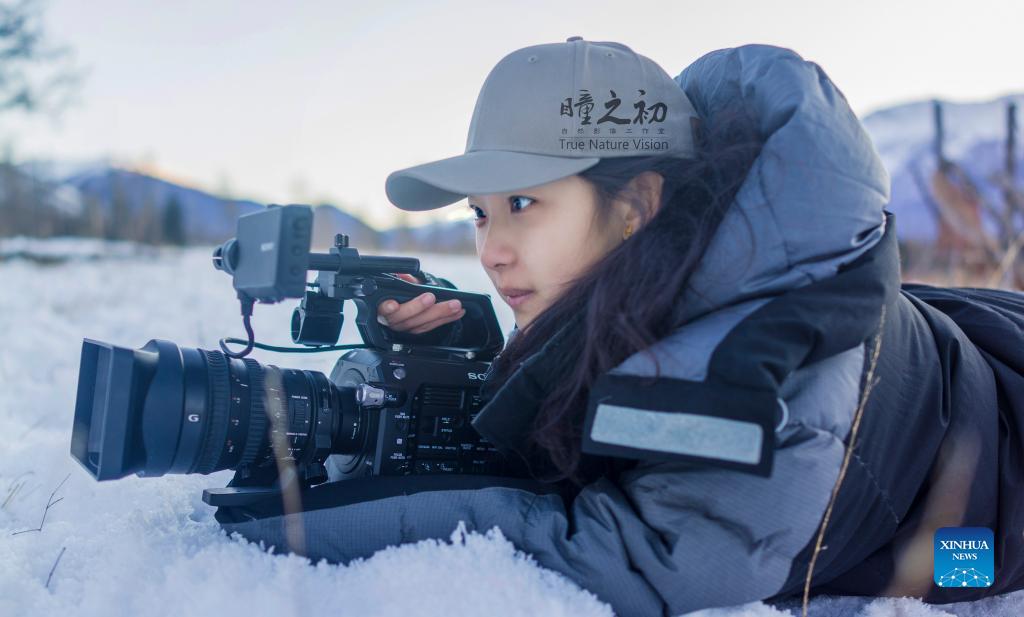 Undated photo shows Chu Wenwen, a wildlife conservationist, filming beavers in northwest China's Xinjiang Uygur Autonomous Region. (Xinhua)