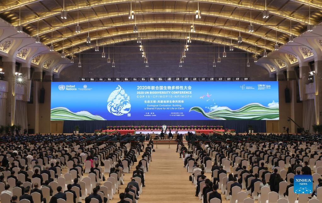 Photo taken on Oct. 12, 2021 shows the leaders' summit of the 15th meeting of the Conference of the Parties to the Convention on Biological Diversity (COP15) held in Kunming, southwest China's Yunnan Province. (Xinhua/Jin Liwang)