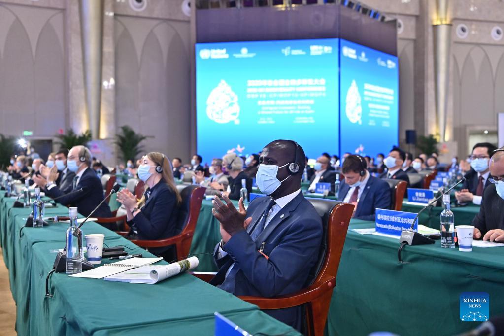Photo taken on Oct. 12, 2021 shows the leaders' summit of the 15th meeting of the Conference of the Parties to the Convention on Biological Diversity (COP15) held in Kunming, southwest China's Yunnan Province. (Xinhua/Li Xin)