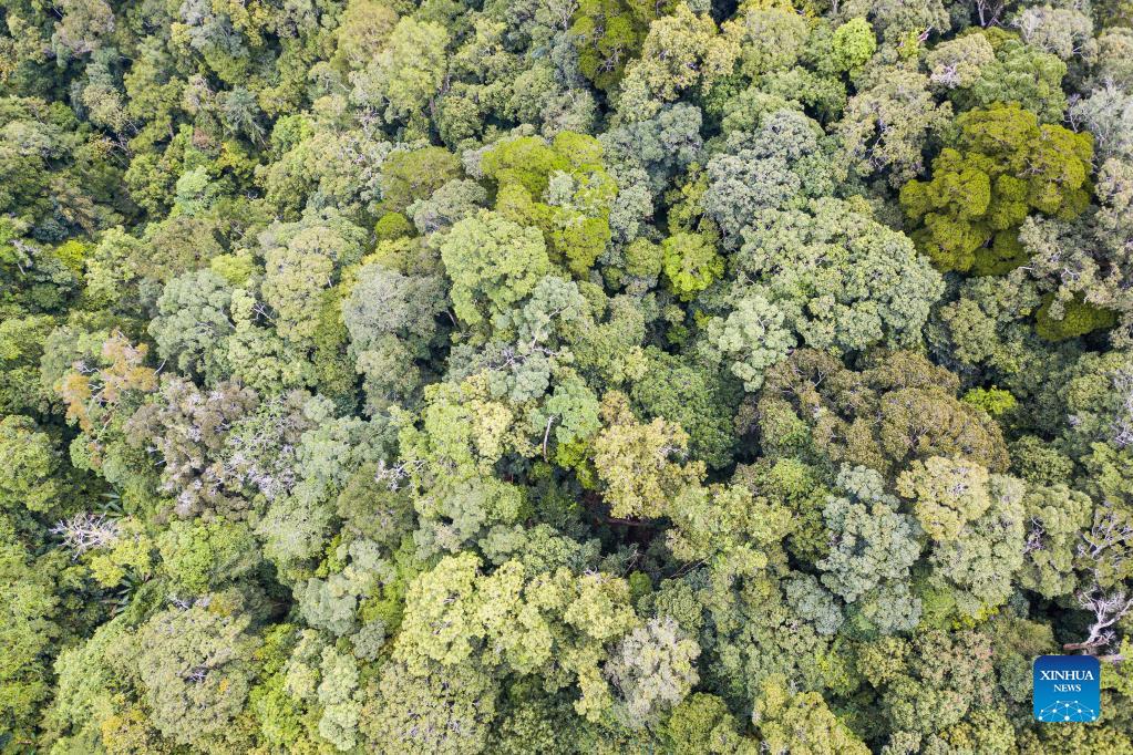 Aerial photo taken on Sept. 9, 2021 shows the view of the Hainan Tropical Rainforest National Park in south China's Hainan Province. The Hainan Tropical Rainforest National Park in south China's Hainan Province boasts one of the most concentrated, best preserved and largest contiguous tropical rainforests in China. The park covers nine cities and counties, with a total area of 4,400 square km, or about one-seventh of Hainan Island's land area. It is an important part of the world's tropical rainforest and a key area for biodiversity conservation in China. (Xinhua/Pu Xiaoxu)