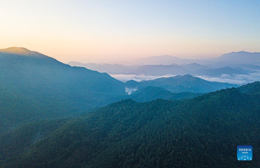 Aerial photo taken on Sept. 30, 2021 shows the view of the Hainan Tropical Rainforest National Park in south China's Hainan Province. The Hainan Tropical Rainforest National Park in south China's Hainan Province boasts one of the most concentrated, best preserved and largest contiguous tropical rainforests in China. The park covers nine cities and counties, with a total area of 4,400 square km, or about one-seventh of Hainan Island's land area. It is an important part of the world's tropical rainforest and a key area for biodiversity conservation in China. (Xinhua/Pu Xiaoxu)