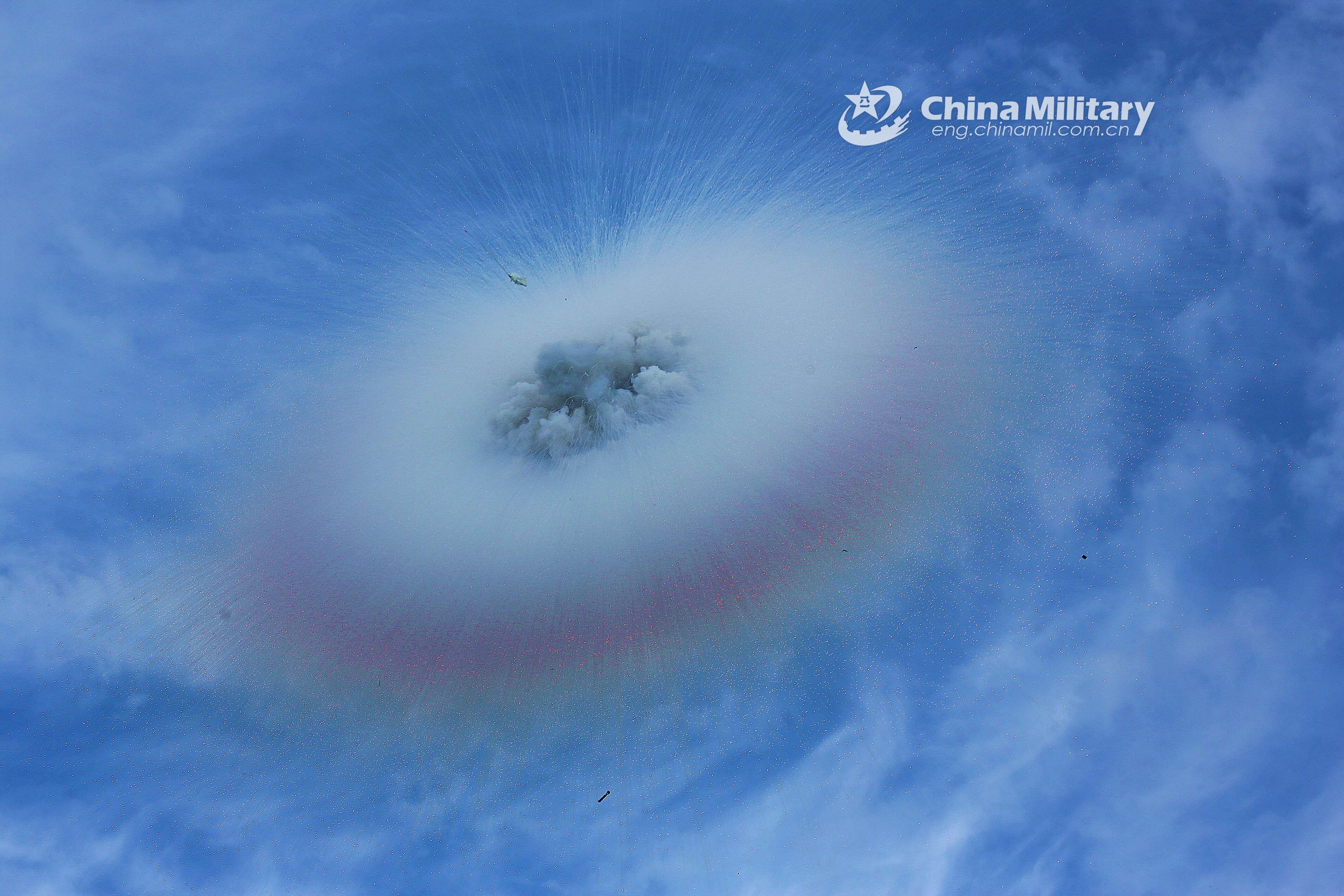 The guided-missile destroyer Suzhou (Hull 132) attached to a destroyer flotilla with the navy under the PLA Eastern Theater Command fires jamming bombs to mask the movement and avoid the simulated missile attack during a maritime combat-readiness patrol mission in early October, 2021. (eng.chinamil.com.cn/Photo by Wen Zidong)