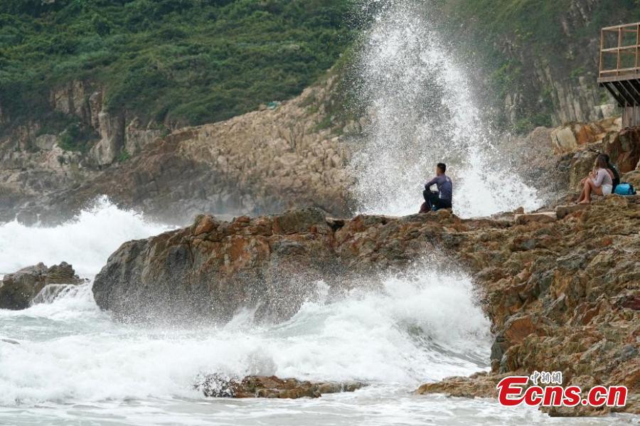 Waves surge waterfront as Tropical Cyclone Kompasu is expected to move closest to Hong Kong, Oct. 12, 2021. (Photo/China News Service)