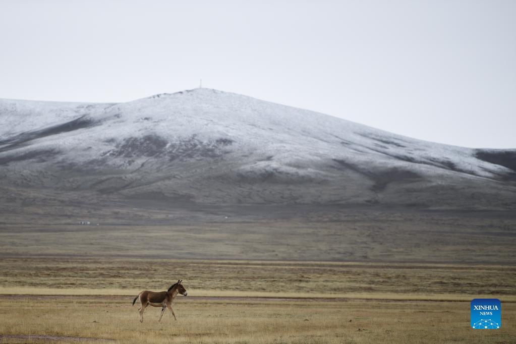 A Tibetan wild donkey is seen at the source of the Yellow River section of the Sanjiangyuan National Park in northwest China's Qinghai Province, May 25, 2021. Sanjiangyuan, meaning the "source of three rivers," is home to the headwaters of the Yangtze, Yellow and Lancang rivers. The ecological system has been steadily improving in recent years in the Sanjiangyuan National Park, making it a habitat of an increasing number of wild animals. (Xinhua/Zhang Long)