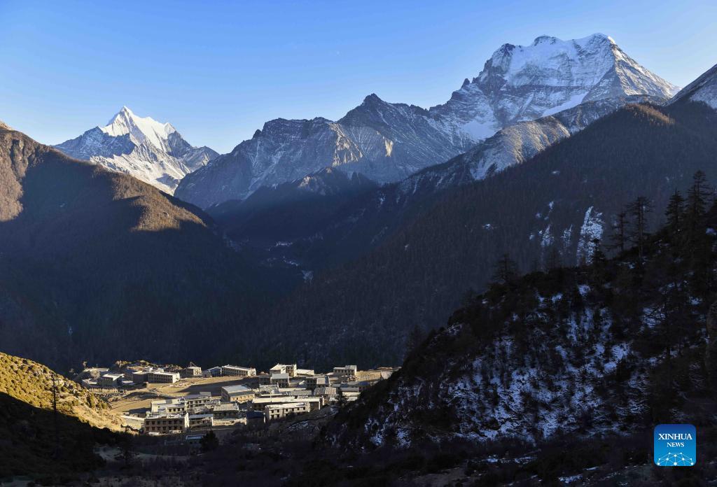 Photo taken on Dec. 31, 2016 shows a sunset view of Yading Village of Daocheng County, southwest China's Sichuan Province. Yin, a 78-year-old renowned ecologist in China, has been dedicating himself to biodiversity protection for more than six decades. After graduating from school in 1960, Yin worked at the Chengdu Institute of Biology of the Chinese Academy of Sciences (CAS), mainly engaging in biological resources investigation and conservation. In 1978, Yin proposed to establish the Jiuzhaigou and Yading nature reserves to prevent them from being destroyed. Nowadays, Jiuzhaigou and Daocheng Yading have become famous scenic spots. (Xinhua/Liu Kun)