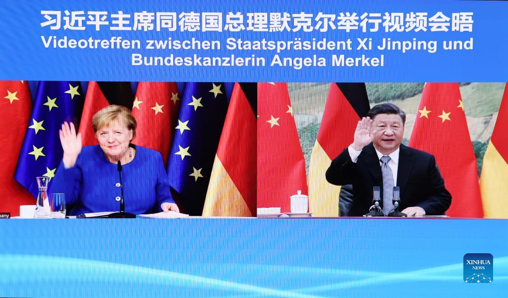 In video call with Merkel, Xi urges enhanced ties with EU, Germany (2)