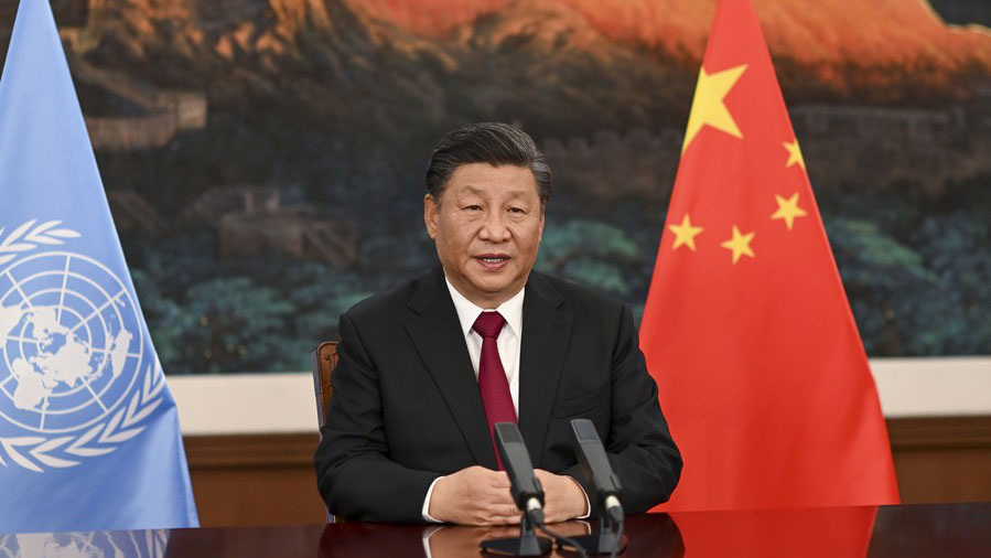 Chinese President Xi Jinping addresses the general debate of the 75th session of the United Nations General Assembly via video on Sept. 22, 2020. (Eskinder Debebe/UN Photo/Handout via Xinhua)