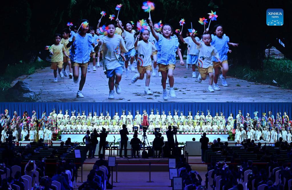 A performance is held at the opening ceremony of the Ecological Civilization Forum of the first part of the 15th meeting of the Conference of the Parties to the Convention on Biological Diversity (COP15) in Kunming, southwest China's Yunnan Province, on Oct. 14, 2021. (Xinhua/Chen Yehua)