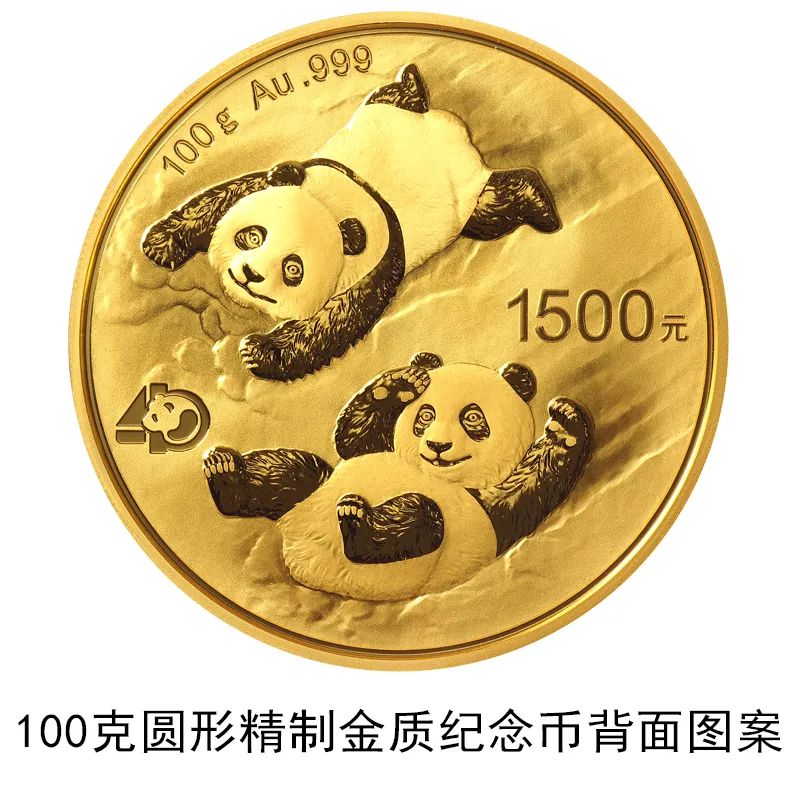 This photo shows the reverse side of a 100-gram panda commemorative gold coin. It has a face value of 2,000 yuan ($310.8). A maximum of 10,000 will be issued. (Photo/pbc.gov.cn)