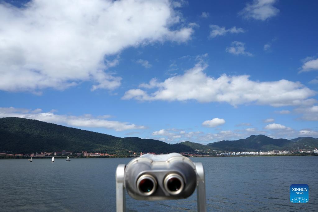 Photo taken on Oct. 13, 2021 shows a view of Dianchi Lake in Kunming, southwest China's Yunnan Province. (Xinhua/Li Yahui)