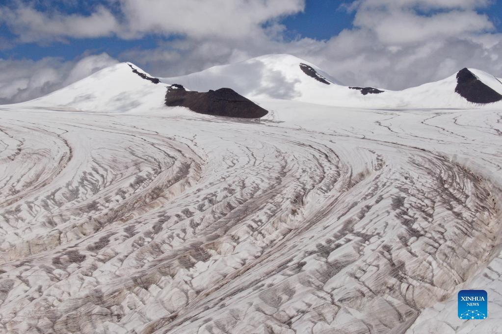 Aerial photo taken on July 26, 2021 shows the glacier at the source of the Yangtze River section of the Sanjiangyuan National Park in northwest China's Qinghai Province. Sanjiangyuan, meaning the "source of three rivers," is home to the headwaters of the Yangtze, Yellow and Lancang rivers. The ecological system has been steadily improving in recent years in the Sanjiangyuan National Park, making it a habitat of an increasing number of wild animals. (Xinhua/Zhang Long)