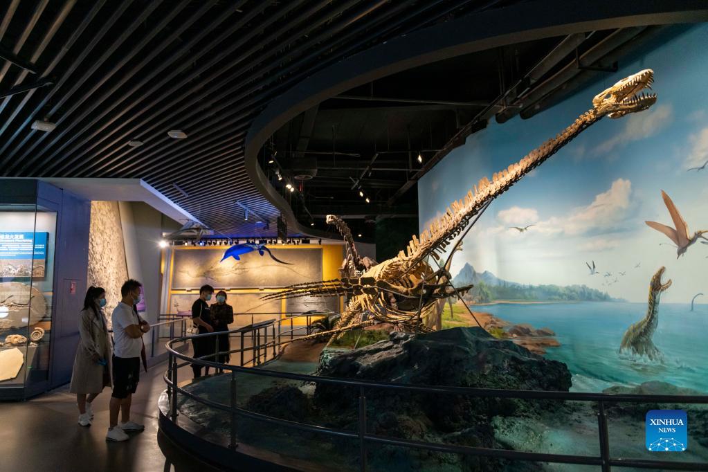People view exhibits at a museum of Chengjiang Fossil site in Chengjiang County, southwest China's Yunnan Province, Oct. 14, 2021. Located in Chengjiang County in southwest China's Yunnan Province, the Chengjiang Fossil site presents the most complete record of an early Cambrian marine community. The Chengjiang Fossil was included into the World Heritage List in 2012. (Xinhua/Chen Xinbo)