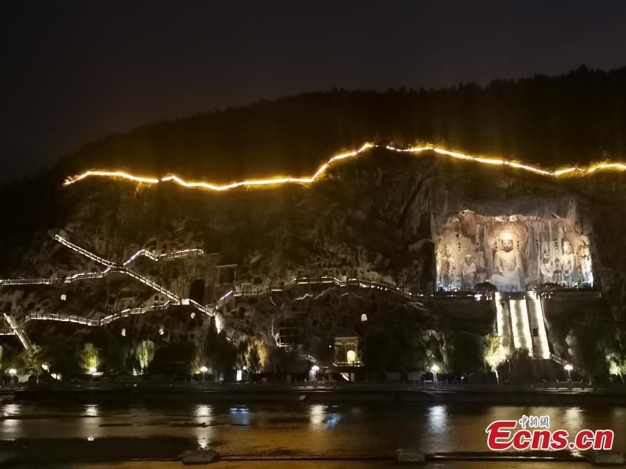 Fascinating night view in Longmen Grottoes attracts tourists (3)