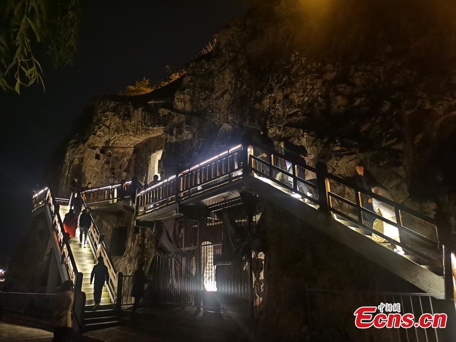 Fascinating night view in Longmen Grottoes attracts tourists (5)