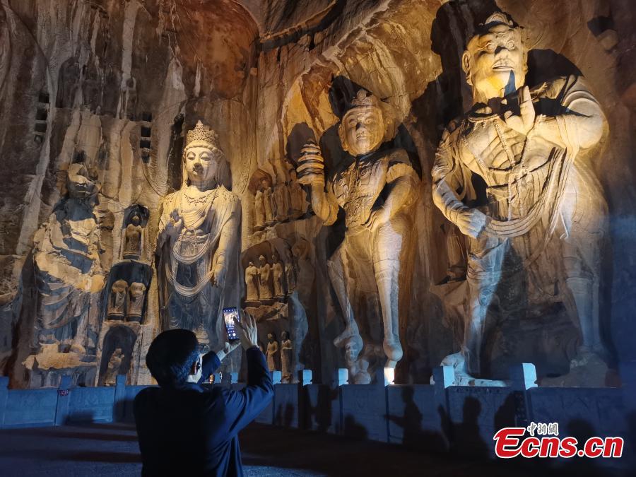 Fascinating night view in Longmen Grottoes attracts tourists