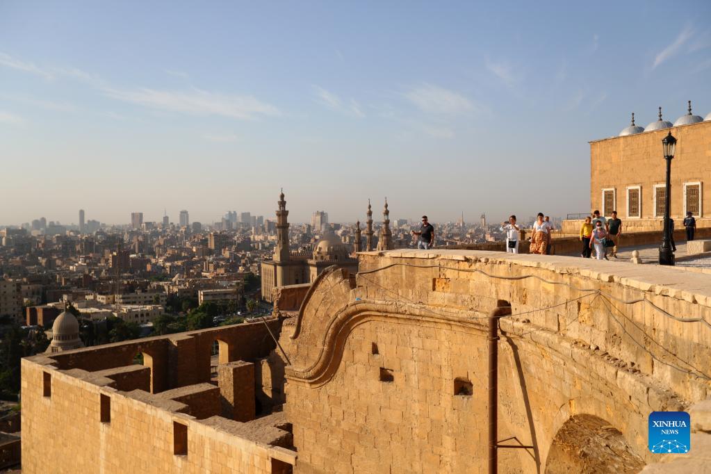 Tourists visit the Saladin Citadel in Cairo, Egypt, on Oct. 14, 2021. The Saladin Citadel, built by Saladin (1138-1193) in the 12th century, is an attraction for tourists in Cairo. (Xinhua/Sui Xiankai)