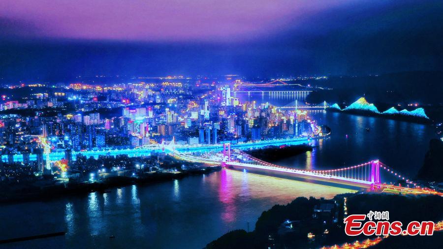 Colorful lights light up the night sky in Yichang, central China's Hubei Province. (Photo/Zhou Xingliang)