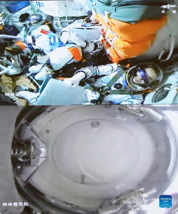 Three astronauts aboard Shenzhou-13 -- Zhai Zhigang, Wang Yaping and Ye Guangfu -- will then enter the Tianhe module, according to the mission plan.