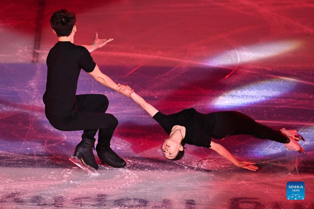 Zhang Siyang (R)/Yang Yongchao of China perform during the Experience Beijing Asian Open Figure Skating Trophy Closing Gala in Beijing, capital of China, Oct. 16, 2021. (Xinhua/Chen Yichen)