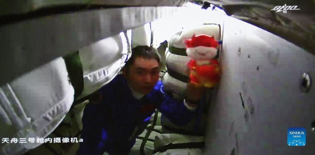 After successfully stationing in China's space station core module Tianhe, the Shenzhou-13 crew opened the hatch of the Tianzhou-3 cargo craft and entered it at 9:50 a.m. (Beijing Time), the CMSA said.