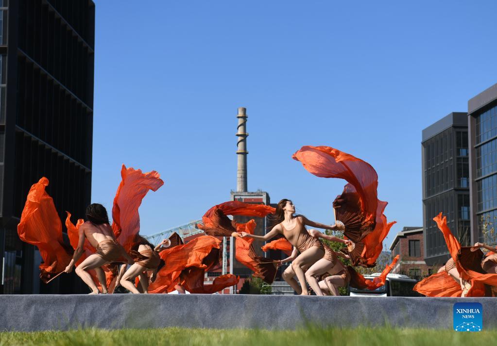 Dancers perform at Shougang Park in Beijing, capital of China, Oct. 17, 2021. A dance show is held at Shougang Park, a steel mill-turned cultural and sports complex, on Sunday. (Xinhua/Jin Liangkuai)