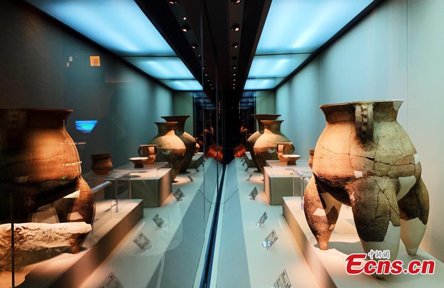 Pottery pots are on display at the Lajia Ruins Museum, Minhe County, northwest China's Qinghai, Oct. 17. Lajia Ruins, dubbed "Pompeii of China," was formed by an earthquake and flood dating back 4,000 years. The Lajia site is the largest disaster excavation site found in China so far. (Photo: China News Service/ Ma Mingyan)