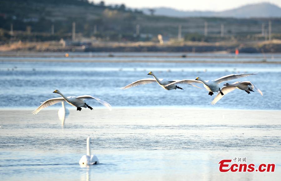 Whooper swans migrate to nature reserve in Shandong for winter (2)