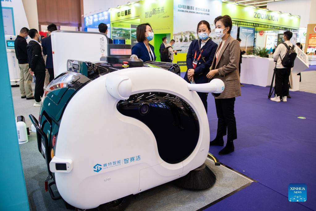 People visit the Global Economic Development and Security Forum Expo of the Boao Forum for Asia (BFA) in Changsha, central China's Hunan Province, Oct. 18, 2021. With the theme of economic security and sustainable development in a world of great change, the three-day forum aims to provide a high-end platform for promoting dialogue between political and business leaders from around the world. (Xinhua/Chen Sihan)