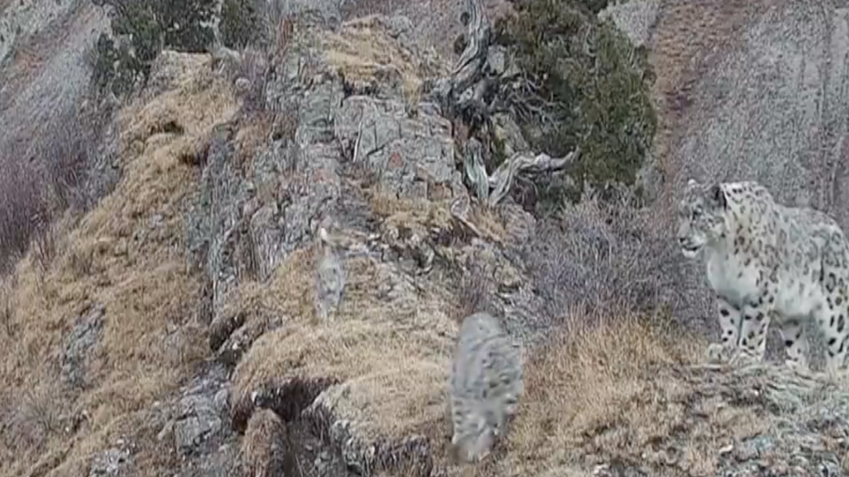 Snow leopards filmed in livestream in Yushu, Qinghai Province