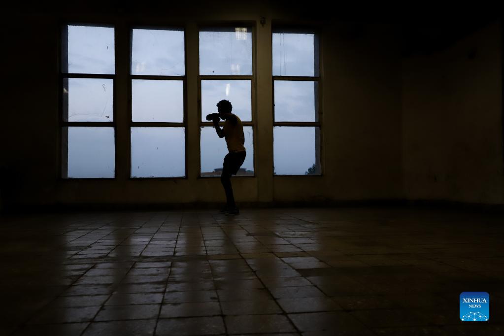 A martial art student practices at Dave Dan Wushu and Kickboxing Training Center in Addis Ababa, Ethiopia, Sept. 29, 2021. (Xinhua/Michael Tewelde)