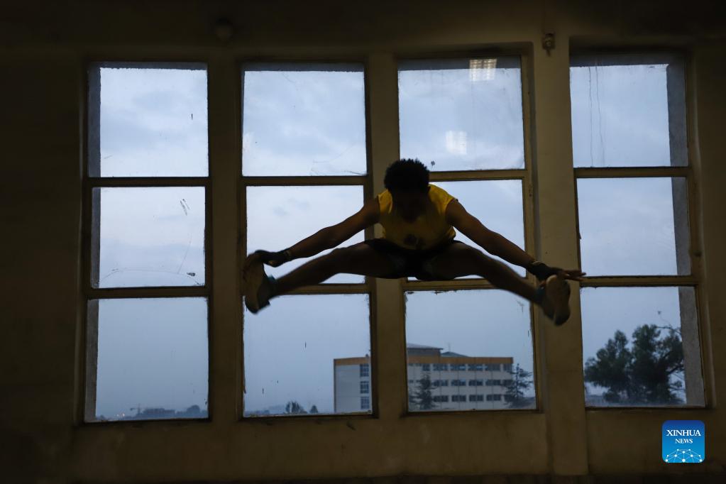 A martial art student practices at Dave Dan Wushu and Kickboxing Training Center in Addis Ababa, Ethiopia, Sept. 29, 2021. (Xinhua/Michael Tewelde)